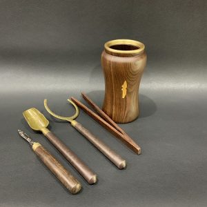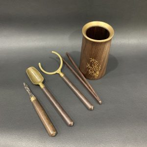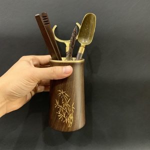 – Bộ sản phẩm gồm: Ống đựng, gắp chén, xúc trà, dao tách trà bánh, cây đỡ chén