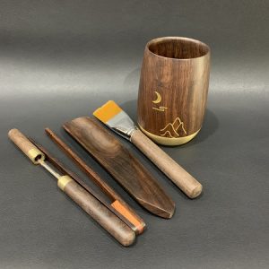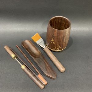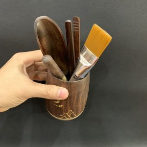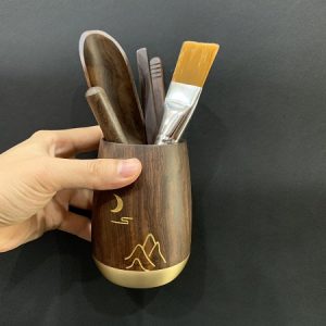 Bộ dụng cụ pha trà gỗ có chổi và lọ cắm hoa sen đẹp KH09