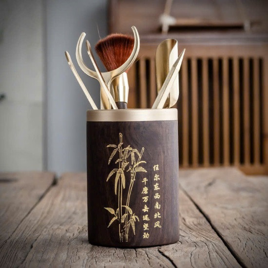 – Gồm: Lọ đựng, xúc trà, gắp chén, chổi, dao tách trà phổ nhĩ, cây dâng trà