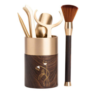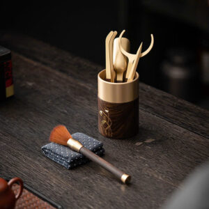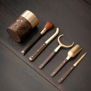 – Bộ sản phẩm gồm: Ống cắm, xúc trà, gắp chén, cây dâng chén, dao tách trà, chổi