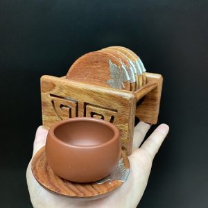 Hãy là người đầu tiên nhận xét “Bộ lót chén gỗ hương tròn đính lá bạc kê ly trà đẹp LC22”