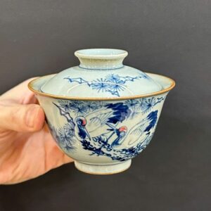 Hãy là người đầu tiên nhận xét “Chén khải sứ cảnh đức men rạn vẽ tay tùng hạc tiềm pha trà 150ml AS03”