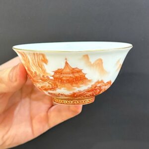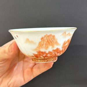 Hãy là người đầu tiên nhận xét “Chén sứ cảnh đức cao cấp men hàn hồng thái vẽ tay sơn thủy 100ml CS47”