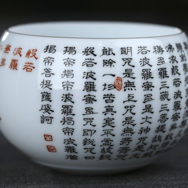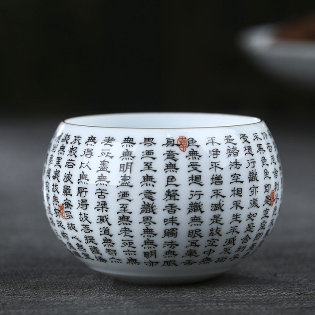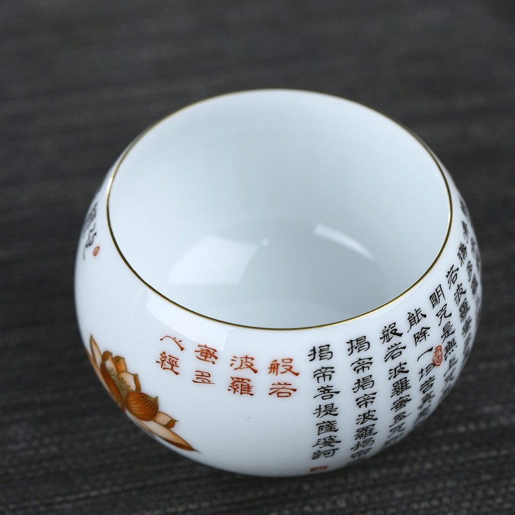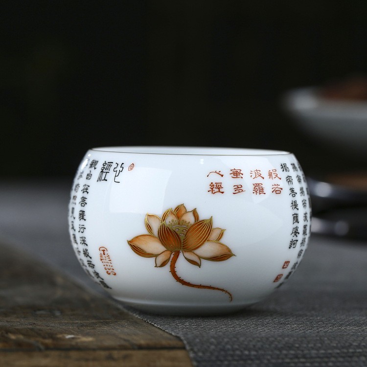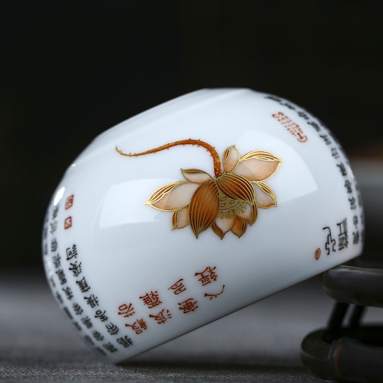Đặt mua Chén Sứ Cảnh Đức Khắc Bát Nhã Hoa Sen Dáng Khum 180ml CS29