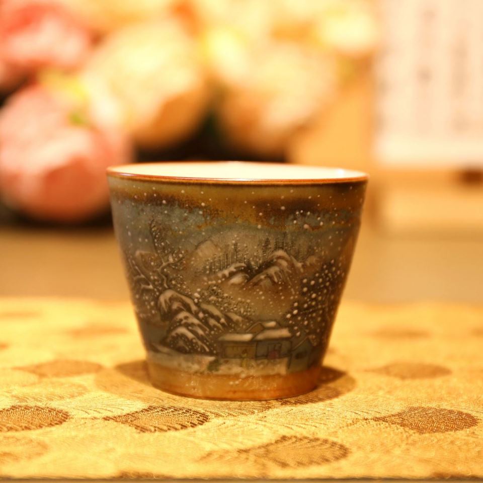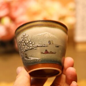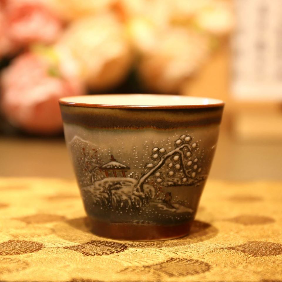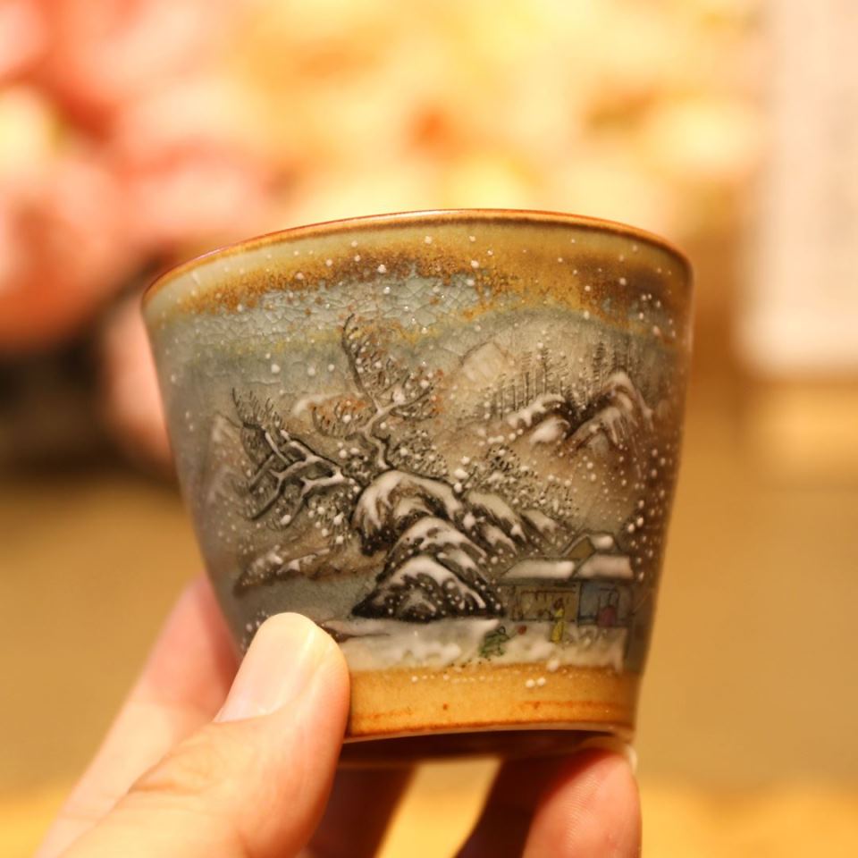 Chén sứ Cảnh Đức vẽ tay cảnh tuyết – men nung củi ấm áp 100ml CS79