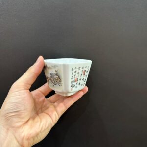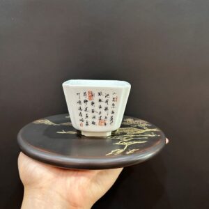 Chén sứ cảnh đức vẽ tay vinh quy bái tổ cao cấp dáng vuông tứ phương đẹp 110ml.