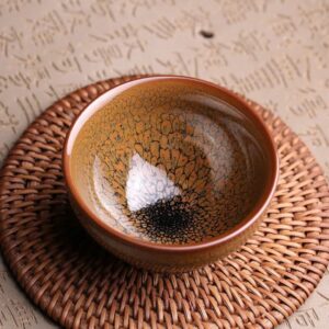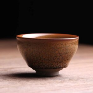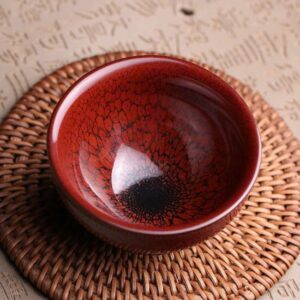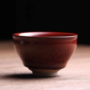 Hãy là người đầu tiên nhận xét “Chén Thiên Mục Giọt Dầu Hỏa Biến Đỏ-Vàng Châu Kiến Cường 100ml CTM54”