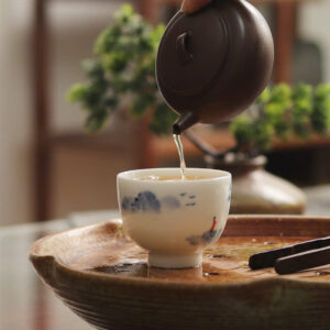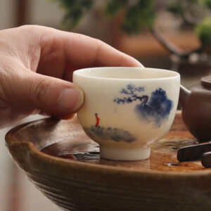 Hãy là người đầu tiên nhận xét “Chén trà sứ cảnh đức vẽ tay thưởng hoa trên núi thủ công 70ml CS09”