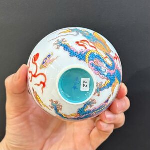Chén trà sứ cảnh đức cao cấp phấn thái vẽ tay thủ công rồng 100ml CS22