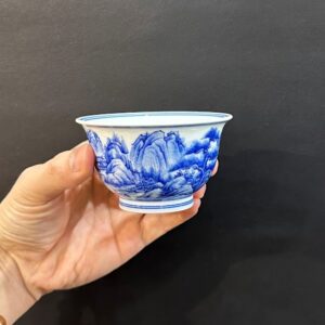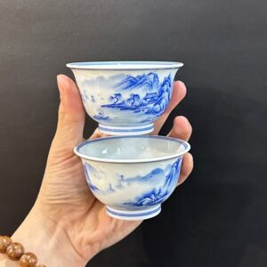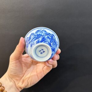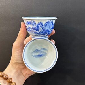 Hãy là người đầu tiên nhận xét “Chén trà sứ cảnh đức men lam cao cấp vẽ thiên lý giang sơn đồ 100ml CS82”