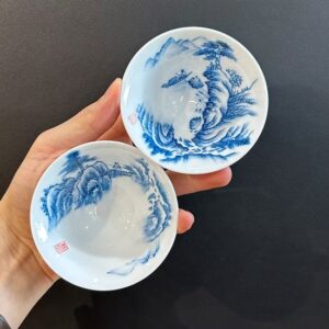Hãy là người đầu tiên nhận xét “Chén trà sứ cảnh đức vẽ tay thủ công dáng nón 6 họa tiết 70ml CS16”