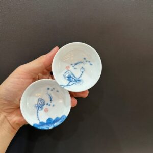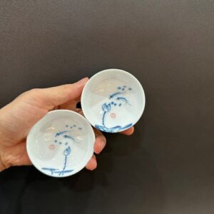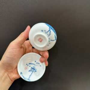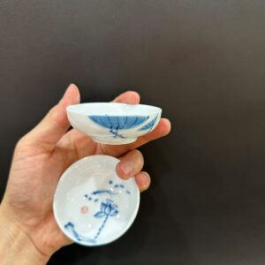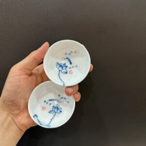 Chén trà sứ cảnh đức vẽ tay sen cá thủ công dáng thấp đẹp 35ml CS17