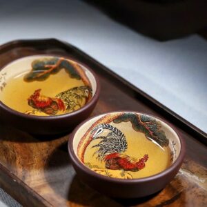 Chén tử sa cao cấp họa gà đất cũ đế tào thanh ly chủ đẹp 100ml CTS17