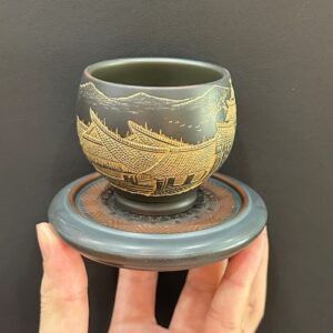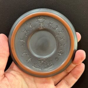 Đế chén trà tử sa dáng tròn khắc họa tiết trống đồng thủ công LC50