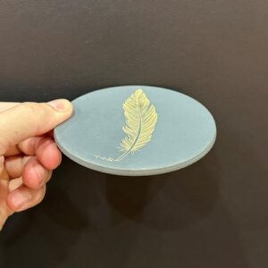 Đế kê chén trà tử sa họa lông vũ thủ công dáng tròn xanh đẹp LC52.