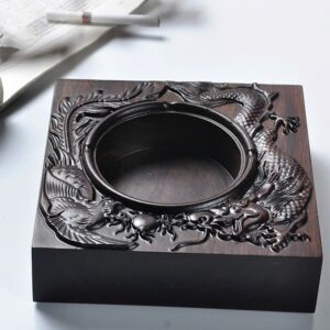 Gạt tàn gỗ gụ nguyên khối hình long phụng dáng vuông 16x4.5cm GTG06