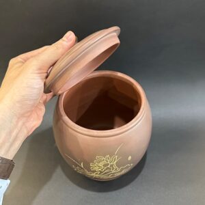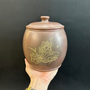 Hãy là người đầu tiên nhận xét “Hũ bảo quản trà lên men tử sa nê hưng thủ công khắc sen đẹp HT70”
