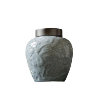 Hãy là người đầu tiên nhận xét “Hũ đựng trà sứ men rạn họa tiết tùng hạc nắp xoáy 2 lớp 900ml HT01”