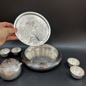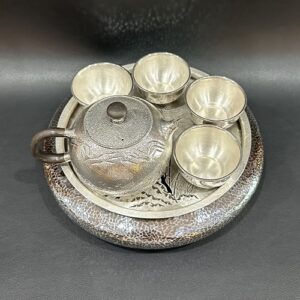 Hãy là người đầu tiên nhận xét “Khay trà bạc nguyên chất 999 bày ấm chén dáng tròn trúc đẹp KB01”