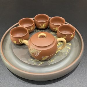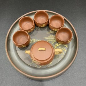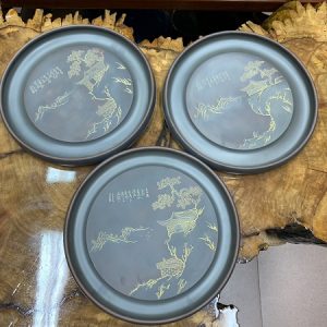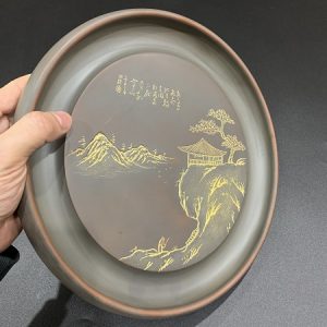 Hãy là người đầu tiên nhận xét “Khay trà đá tử sa nê hưng dáng tròn khắc sơn thủy để ấm chén 28cm KNH03”