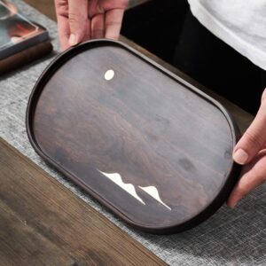 Đặt mua Khay trà doc am bằng gỗ gụ dáng bo tròn đẹp 30x15cm KTG16
