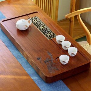 Khay trà gỗ nguyên khối dạng bakelite bày ấm chén trà 60x32cm KTG36