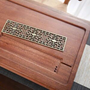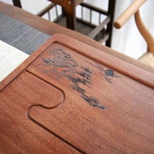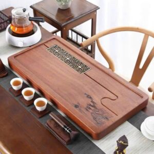 Hãy là người đầu tiên nhận xét “Khay trà gỗ nguyên khối bày ấm chén đẹp khắc cành tùng 70x35cm KTG35”