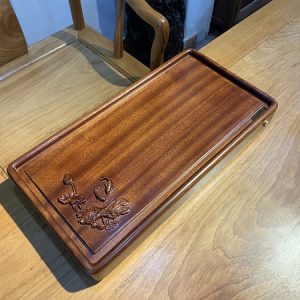 Đặt mua Khay trà gỗ nguyên khối để ấm chén sen cá đẹp 55x28cm KTG31