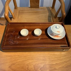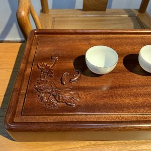 Hãy là người đầu tiên nhận xét “Khay trà gỗ nguyên khối để ấm chén sen cá đẹp 55x28cm KTG31”