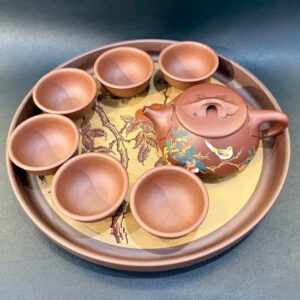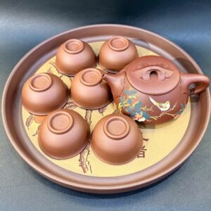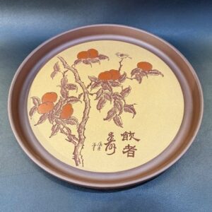 Hãy là người đầu tiên nhận xét “Khay trà tử sa đất cũ nguyên khoáng để ấm chén tròn hình cây đào 29.5cm KTS02”