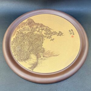 Hãy là người đầu tiên nhận xét “Khay trà tử sa nguyên khoáng đất cũ dạng đĩa tròn sơn thủy 26x1cm KTS01”