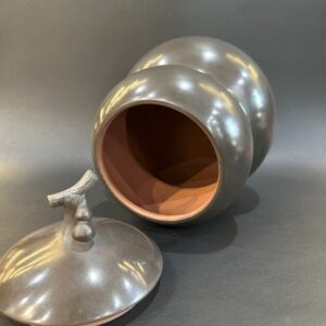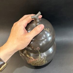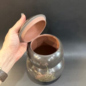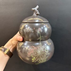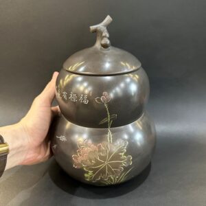 Hãy là người đầu tiên nhận xét “Lọ bảo quản trà lên men tử sa nê hưng hình hồ lô khắc sen HT94”