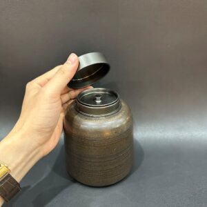 Lọ đựng trà gốm đẹp nắp nhôm 2 lớp bảo quản trà tốt 900ml HT58