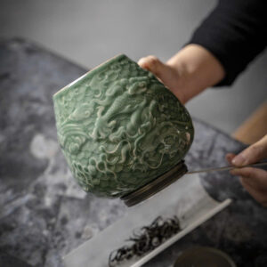 Hãy là người đầu tiên nhận xét “Lọ đựng trà sứ men ngọc cao cấp họa tiết rồng nắp xoáy 900ml HT05”