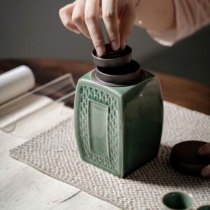 Lọ đựng trà sứ men ngọc cao cấp nắp xoáy 2 lớp dáng vuông 900ml HT36