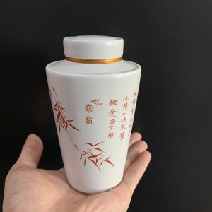Hãy là người đầu tiên nhận xét “Lọ đựng trà sứ nắp xoáy kín dáng cao họa trúc đẹp 350ml HT29”