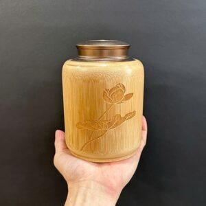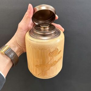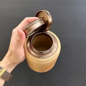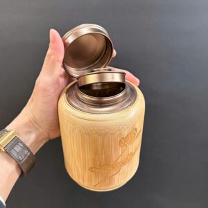Lọ đựng trà tre nắp xoáy 2 lớp cực kín bảo quản trà tốt cao 14cm đựng được 3 lạng.