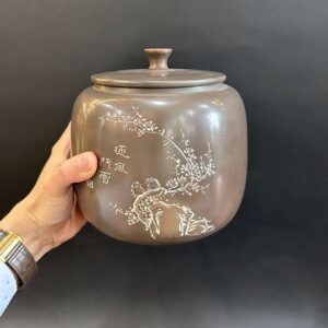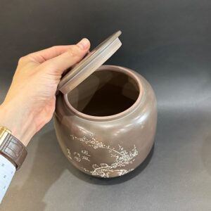 Hãy là người đầu tiên nhận xét “Lọ đựng trà tử sa nê hưng hỏa biến mai lan cúc trúc thủ công thấp HT99”