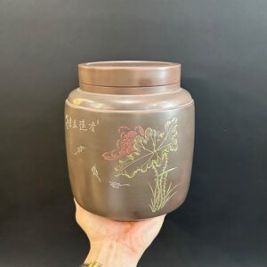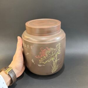 Hãy là người đầu tiên nhận xét “Lọ đựng trà tử sa nê hưng trà lên men thủ công hoạ sen đẹp HT61”