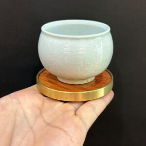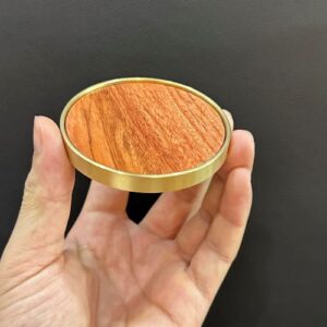 Hãy là người đầu tiên nhận xét “Lót ly trà đẹp chất liệu gỗ hương dáng tròn viền vàng đồng LC39”