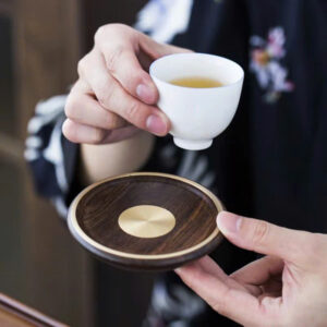 Hãy là người đầu tiên nhận xét “Lót ly trà gỗ gụ viền đồng dáng tròn dày kê ấm chén đẹp 10x2cm LC49”