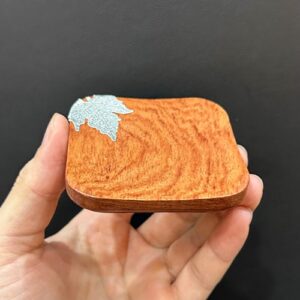 Lót ly trà gỗ hương vuông đính lá kê bạc chén trà đẹp 7x7cm LC30