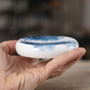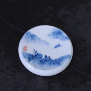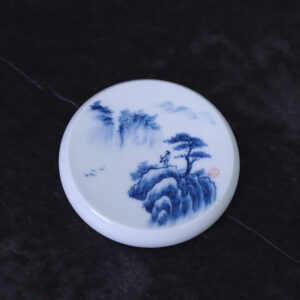 Hãy là người đầu tiên nhận xét “Lót ly trà sứ cảnh đức vẽ tay sơn thủy dáng tròn dày 9.8×1.8cm LC47”