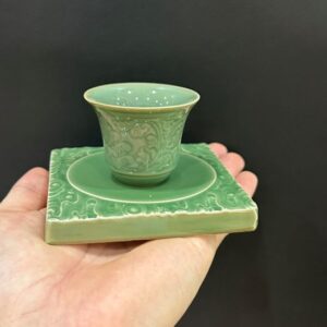Hãy là người đầu tiên nhận xét “Lót ly trà sứ ngọc cảnh đức men lam cao cấp dáng vuông đẹp LC03”