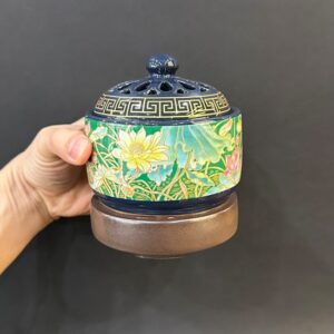 Lư điện xông trầm hương dạng miếng và bột bằng sứ hoa sen bền đẹp bày bàn trà .