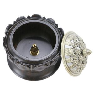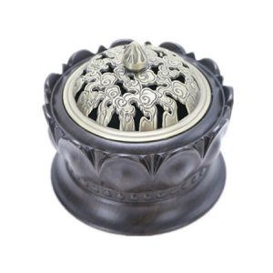 Đặt mua Lư đốt trầm bằng gỗ dáng tăng mao nắp đồng phỏng cổ LG04