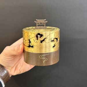Hãy là người đầu tiên nhận xét “Lư trầm hương đồng nguyên chất dáng chùa đẹp 410g 7x8cm LD28”