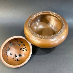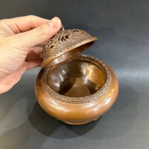 Hãy là người đầu tiên nhận xét “Lư xông trầm bằng đồng nguyên chất cỡ to đẹp có đế kê 1620g 13x8cm LD52”