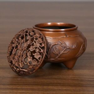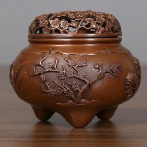 Hãy là người đầu tiên nhận xét “Lư xông trầm bằng đồng nguyên chất mai lan cúc trúc 900g 12x8cm LD53”