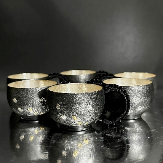 Đặt mua Ly bạc uống trà nguyên chất 999 gò tay thủ công hoa mai cao cấp 45ml CB84